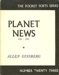 Planet News is a book of poetry written by Allen Ginsberg and published by City Lights Bookstore in 1968. It is number twenty three in the Pocket Poets series.[1] It contains poems written by Ginsberg between 1961 and 1967, many written during his travels to India, Japan, Europe, Africa, and many other places.[2] Poems in this collection include:[1]