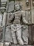 One exceptional example is carved on the inner wall of the room depicting a representation of a Khmer prince which is identified by his crown.[9]