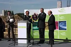 Platini confirmed that he would run for the UEFA presidency in July 2006.[39] In the election in Düsseldorf on 26 January 2007, he defeated Lennart Johansson, who held the post for the previous 16 years, by 27 votes to 23.[40] Platini based his speech on virtues of solidarity and universality.