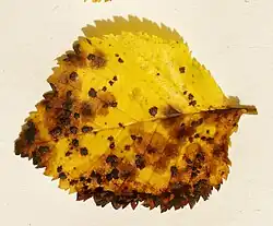 leaf affected by Platychora ulmi