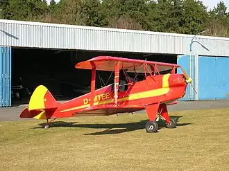 The Kiebitz features a strut-braced biplane configuration, a two-seats-in-tandem open cockpit with a small windshield, fixed conventional landing gear and a single engine in tractor configuration.[1][2]