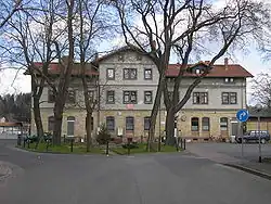 When the Thuringian Railway Company (Thüringische Eisenbahn-Gesellschaft) proposed in 1876 to continue the line from Arnstadt to Ilmenau, difficult negotiations had to be held with the representatives of the various states. The Duke of Saxe-Coburg and Gotha Ernst II offered the greatest resistance. The Thuringian Railway Company knew that the Duke liked to stay in Elgersburg for recreation and they wanted to meet him with a proposal for a route that would start in the valley of the Zahme Gera and run via Geschwenda, Arlesberg (which later merged with mid-Thuringian—mittelthüringischen—Gera to form Geraberg) to Elgersburg. This plan failed initially due to the resistance of the Duke, who wanted to build a railway from Ohrdruf to Elgersburg that would have run entirely over his own territory, but also due to massive protests by the citizens of Geschwenda against the railway. The citizens feared that constant boiler explosions would ravage the country, that the smoke of the locomotives would pollute the air and make the grass bitter and that the cows would give only sour milk as a result of the sight of the monsters—common prejudices in the time, which George Stephenson also had to fight in England.[3] The planned line running entirely through the Reichenbach valley and Martinroda was welcomed there and Martinroda was willing to provide the land for any route through it free of charge. However, this route now failed because of the veto of the Duke of Gotha. Since his preferred route from Ohrdruf to Elgersburg proved too expensive, he had to give it up and now wanted a station in Elgersburg on the Arnstadt–Ilmenau line. His approval for the project was needed because the Arnstadt–Plaue section of the line had to run through his territory. A route from Plaue that only ran through the Reichenbach Valley would not have passed through Elgersburg, but it would have been much cheaper. The Duke's consent was dependent on a large and prestigious station in Elgersburg, which would include permanent additional tracks that would be available for the use of his special trains.[4]