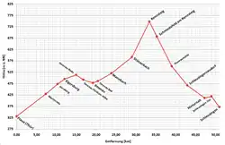 - between Rennsteig and Schmiedefeld am Rennsteig for 1.2 kilometres (line-kilometre 33.93 to 35.13) at a gradient of 5.44%
