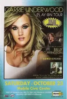 The Play On Tour was the third headlining tour by American country music singer Carrie Underwood, in support of her third studio album Play On. The first legs which contains dates only in North America, were announced on December 10, 2009. The second leg was announced on April 16, 2010. Tickets went on sale on April 24, 2010.