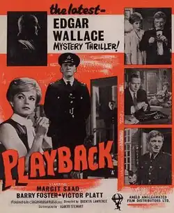 Playback is a 1962 British crime film directed by Quentin Lawrence and starring Margit Saad, Barry Foster and Nigel Green.[1] It was written by Robert Banks Stewart based on a short story by Edgar Wallace,[2] and was part of the Edgar Wallace Mysteries film series.
