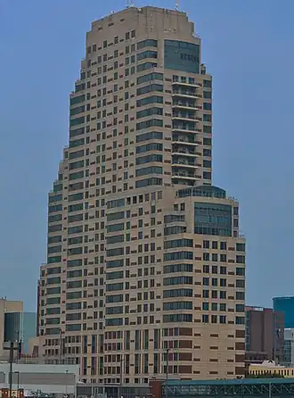 Plaza Towers is a mixed-use highrise building in Grand Rapids, Michigan. At 345 feet (105 m), it was the tallest building in the city until the completion of the River House Condominiums in 2008. The building contains apartments on floors 8–14, individually owned condominiums on floors 15–32, and a 214-room[2] Courtyard by Marriott hotel on floors 1–7.[3]