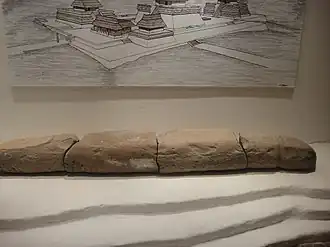 The complex was built over a large rectangular platform oriented east–west, measuring approximately 132 by 89 meters (433 by 292 ft) over which several structures were built, three main structures are aligned east – west.[1]