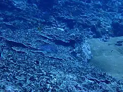 Plectorhinchus macrospilus can be found in the caves and crevices of coral reefs and in the vicinity of underwater pinnacles as deep as 30 m (98 ft).[1] It is a solitary species, except when spawning when they do so in distinct pairs.[2]