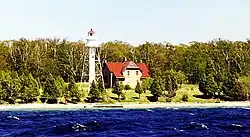 Plum Island is an island in Lake Michigan in the southern part of the town of Washington in Door County, off the tip of the Door Peninsula in the U.S. state of Wisconsin.[1] The uninhabited island has a land area of 1.179 square kilometres (0.455 sq mi) or 117.87 hectares (291.3 acres). Carp Lake is located on the northwestern side. During years when Lake Michigan's water levels are high, it is a lagoon of Lake Michigan, but it gets cut off as a separate lake during low-water years.[2]