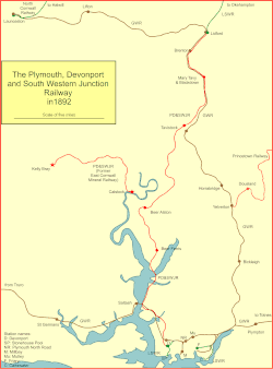 The Plymouth, Devonport and South Western Junction Railway (PD&SWJR) was an English railway company. It constructed a main line railway between Lydford and Devonport, in Devon, England, enabling the London and South Western Railway (LSWR) to reach Plymouth more conveniently than before.
