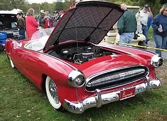 The Plymouth Belmont was a 1954 concept sports car built by Plymouth. It (and the 1954 DeSoto Adventurer concept car) were the first plastic-bodied cars by the Chrysler Corporation. The Belmont seated two and used a V8 engine, that produced up to 150 hp (112 kW).[1] It was originally painted in a light blue metallic, it was painted red later. It was 191.5" long.[2] Had it ever become a production model, its main competitors would have been the Chevrolet Corvette and the Ford Thunderbird.