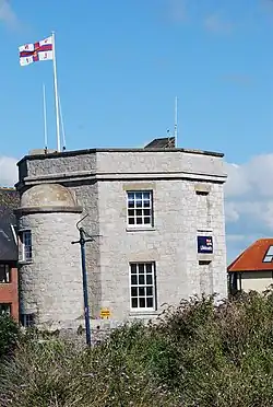 Crew facilities and storage are in the old Customs Office on the quay close to the moorings. This is a Grade II Listed building which was erected in 1850 to the design of George Wightwick. It is built from granite, octagonal in plan and three storeys high. This gave the customs officers all-round views of the area.[12][13][14]