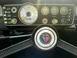 The 1962 Valiant was given a completely new asymmetric instrument cluster. Like that of the larger 1962 Plymouth models, the new Valiant cluster was highly regarded for its clean design and easy readability. A large round speedometer was placed at the left of the cluster, with separate round gauges for fuel level, engine temperature, and charging system condition (amperes) in a row to the right of the speedometer. Automatic transmission pushbuttons were in a column at the left edge of the panel, and heater pushbuttons were in a column at the right edge. A new shallower-dish steering wheel was also introduced.
