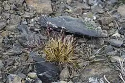 Poa abbreviata subsp. marshii, also known as Marsh's blue grass, is found scattered across the interior of western North America on the Alpine peaks of the White Mountains, (California) Schell Creek Range (Nevada), southern Rocky Mountains (Idaho), Little belt Mountains (Montana), and the Big Horn Mountains (Wyoming).[3]