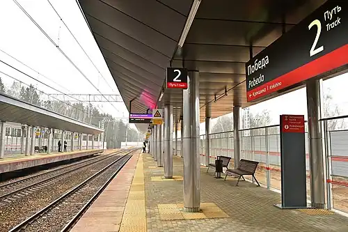 Pobeda (Russian: Победа, lit. Victory) is a railway station of Kiyevsky suburban railway line in Naro-Fominsky District of Moscow Oblast. It was opened in 1951 and rebuilt in 2020.[1][2]