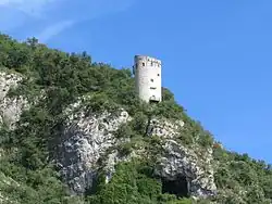 A Venetian fortified tower stands near the village.