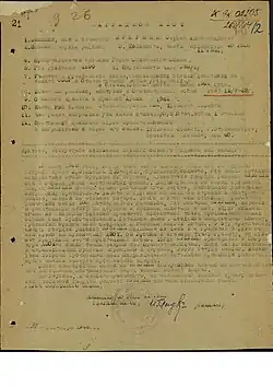 Database "Movement of the people in the Great Patriotic War 1941-1945" (Russian: Подвиг народа в Великой Отечественной войне 1941—1945 гг.) is an electronic database of documents related to the period of the Great Patriotic War. The content of the bank is formed by the documents of the Central Archives of the Russian Ministry of Defence (TsAMO), specifically award files and documents on operational control of hostilities.