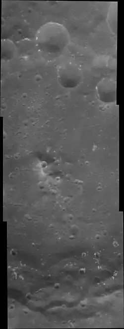 Hollows are scattered across Poe crater, and are abundant on the southern rim.[2]