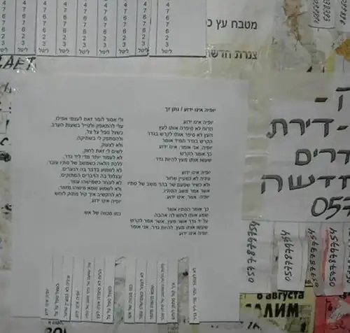 The first poems for rent were posted in Israel during October 2005. One of those was documented in the Hebrew creation site Tzura.[2] Those were poems of famous Israeli poets such as Yehuda Amichai and Nathan Zach, as well as poems of the Polish poet, Nobel Prize winner, Wislawa Szymborska.