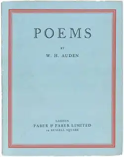 Poems is the title of three separate collections of the early poetry of W. H. Auden.[1] Auden refused to title his early work because he wanted the reader to confront the poetry itself. Consequently, his first book was called simply Poems when it was printed by his friend and fellow poet Stephen Spender in 1928; he used the same title for the very different book published by Faber and Faber in 1930 (2nd ed. 1933), and by Random House in 1934, which also included The Orators and The Dance of Death.