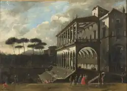 The Poggio Reale villa or Villa Poggio Reale was an Italian Renaissance villa commissioned in 1487 by Alfonso II of Naples as a royal summer residence. The Italian phrase "poggio reale" translates to "royal hill" in English. The villa was designed and built by Giuliano da Maiano and located in the city of Naples, in the district now known as Poggioreale, between the present Via del Campo, Via Santa Maria del Pianto and the new and old Via Poggioreale. At the time it was built, a period when the capital city of the Kingdom of Naples was renowned for elegant homes with expansive vistas of the surrounding landscape and Mount Vesuvius, the villa was outside the city walls of Naples and was one of the most important architectural achievements of the Neapolitan Renaissance.[1] Imitated, admired, robbed of its treasures by another king, left in ruins and partially destroyed, the summer palace of the King of Naples lives on in name as a style.[2][3]
