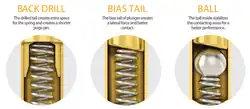 Many manufacturers have created their own proprietary variations on this design, most commonly by varying the interface between the plunger and spring. For example, a ball may be added between the two components, or the plunger may have an angled or countersunk tip.[4]