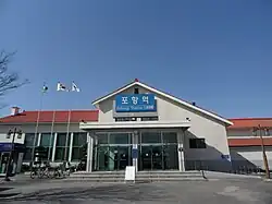 Pohang station (Korean: 포항역; Hanja: 浦項驛) is a railway station in the city of Pohang, South Korea. The station is the terminus of the Donghae Line.