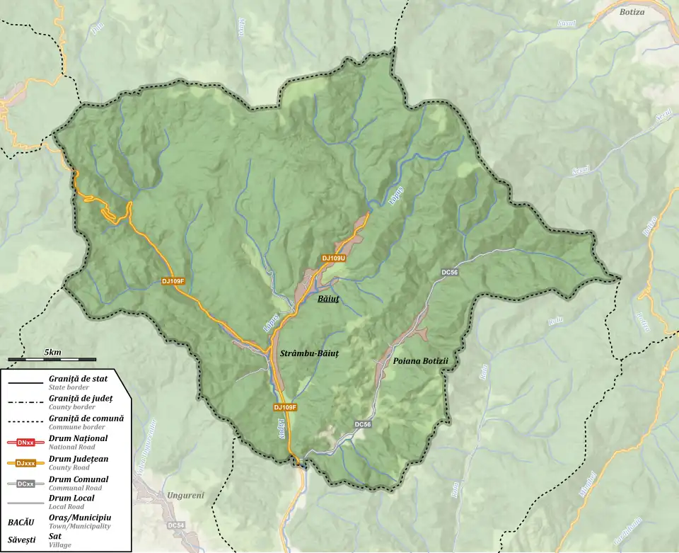 Băiuț (Hungarian: Erzsébetbánya) is a commune in Maramureș County, Transylvania, Romania. It is composed of three villages: Baiuț, Strâmbu-Băiuț (Kohóvölgy), and Poiana Botizii (Rákosfalva).