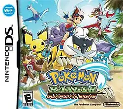 Pokémon Ranger: Guardian Signs (ポケモンレンジャー 光の軌跡, Pokemon Renjā Hikari no Kiseki; lit. "Pokémon Ranger: Tracks of Light") is an action role-playing video game developed by Creatures Inc. and published by The Pokémon Company and by Nintendo for the Nintendo DS. It is the sequel to Pokémon Ranger and Pokémon Ranger: Shadows of Almia and it is the third installment of its series. It was released in Japan on March 6, 2010, North America on October 4, 2010, and Europe on November 5, 2010. It was released on the European Wii U Virtual Console on June 9, 2016. Gameplay revolves around capturing Pokémon with the Capture Styler by drawing circles around them. The game received mixed or average reviews, with Metacritic giving it a 68 and GameRankings giving it 69%.