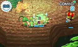 The game uses a form of currency called Poké Diamonds, which can be obtained either through normal gameplay, purchased directly with real money through the Nintendo eShop, or exchanged through StreetPass.[5] A limit on real-world currency use in-game does exist, however, and players are allowed to purchase a maximum of 3,000 Poké Diamonds through this method.[6] After buying 3,000 of these, a mine will appear, granting 40 of them once per day. Poké Diamonds can be used to unlock features such as increasing the chance to find certain Pokémon, in-game travel, continuing to play a stage after a Pokémon's health has run out, or additional Pokémon storage. Challenges, which are missions with a specific set of goals, may also grant Poké Diamonds, in addition to cosmetic items such as clothing.