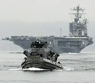 ![]() Pokagon (YTB-836) returns to the pier as the Nimitz-class aircraft carrier USS Abraham Lincoln (CVN-72) departs Naval Station Everett, WA. for a scheduled deployment to the 5th Fleet area of responsibility.