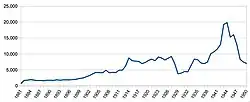 | 1910 | 4,129 | 20 | 3 | [32] |