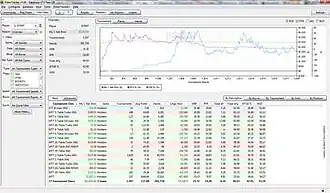 PokerTracker's probability graphs, as well as historical statistics of the hands a user and his or her opponents have played, enable the user to analyze conditional statistical possibilities and optimal betting amounts. The situations it analyzes are conditional on the opposition's playing characteristics and the player's position relative to the dealer.[20] Graphs can be produced for a single session or for any part of one's playing history.[19] One of the biggest improvements in PokerTracker 3 over PT2 is that it is fully customizable so that all statistics and reports can be tailored to the individual user.[11][21] The Guardian claims most serious players use PokerTracker during online play to constantly calculate situational optima.[22]