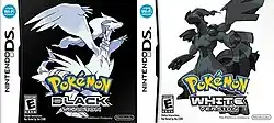 ![]() North American box art for Pokémon Black and Pokémon White, depicting the legendary Pokémon Reshiram and Zekrom respectively | |