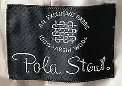 Pola Stout is regarded as the prototype for several women of integrity and purpose in Rex Stout's Nero Wolfe corpus.[83] Her place in the textile and fashion industry furnished background[84] and plot for such stories as The Red Box (1937), Red Threads (1939), and "Frame-Up for Murder" (1958).[83] Direct references to Pola Stout Inc. appear in the 1949 novel, The Second Confession (chapter 6), in which Madeline Sperling wears "a soft but smooth wool dress of browns and blacks that looked like a PSI fabric", and in the 1969 novel Death of a Dude (Chapter 3) in which Archie Goodwin "rinsed off and changed to a PSI shirt and brown woolen slacks".