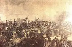 After the outbreak of the Polish November 1830 Uprising, Hungarians collected money for Polish insurgents and provided help and shelter to Polish refugees.[6][7] Many of them also joined the ranks of the Polish rebels.[6] During the Hungarian Revolution of 1848, some 10,000 Polish volunteers fought for Hungarian independence,[8] and Polish General Józef Bem became a national hero of both countries.[9]