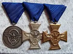 The Police Long Service Award (Germany) (Polizei-Dienstauszeichnung) was a long service medal awarded to active members of the German Police during the era of Nazi Germany as a political award. Professor Richard Klein designed the awards, which varied slightly in design depending on the length of service of the recipient.[1]