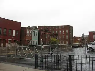 In early 1973, 67 acres (27 ha) of land in Cincinnati's West End was designated the Dayton Street Historic District and listed on the National Register of Historic Places. Comprising approximately four hundred contributing properties,[1] the historic district encompassed four blocks of York Street,[8] including Police Station Five.[2]: 2 The station was individually added to the Register in 1980 as part of a multiple property submission of Hannaford-designed buildings, and one year later it was included in another multiple property submission of Cincinnati patrol stations. Even though no police station has occupied the lot at 1024-1026 York Street since the 1980s, the property remains on the National Register.[1]