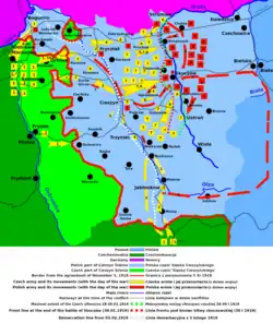 - ^ "Před 93 lety se bojovalo o Těšínsko. Postup do Polska stoply mocnosti" (in Czech). Idnes.cz. 17 January 2012. Retrieved 26 August 2019.