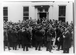 After Woodrow Wilson, Polish voters swung Republican starting in 1920, like many ethnics who supported Warren Harding. Poles were upset with the borders set up by the Treaty of Versailles, as were the Germans, Italian, Czech, and Irish ethnics in the United States.[11] Poles were also frustrated by the Little Treaty of Versailles, which was signed at the same time as the official Treaty of Versailles. The "little treaty" placed on Poland's independence a contingent minority clause, stated as: "Poland accepts ... provisions ... to protect the interests of inhabitants of Poland who differ from the majority of the population in race, language, or religion". The new Polish nation, which contained many Russians, Ukrainians, Jews, and Germans, was made especially weak by the clause granting these groups a protected class distinction in Poland.[12] Ethnic strife with the Ukrainians and Russians were made very tense as the result of ongoing wars, including the Polish–Ukrainian War and the Polish–Soviet War. The Treaty provided minority safeguards to Jewish Poles, and Wilson sent Henry Morgenthau, Sr. and other Jewish-American diplomats to Poland to defend Jews against any anti-semitism. These 1919 investigations were called "humiliating invasions upon the internal affairs of Poland through the granting of privileges for the Jews" by the Polish National Alliance. Poles felt that the new nation was held to a double standard, as their national minorities were protected by the League of Nations, whereas Polish minorities in Germany or Russia did not experience corresponding protections, despite continuous ethnic strife.[12] Dziennik Zwiazkowy, a Polish-American newspaper, endorsed Harding, who campaigned as being against the League of Nations, as "the next in a line of great and wise [Republican] presidents."[12] The postwar economy suffered from double digit unemployment and 15% inflation, and a rise in violence and labor protests served as a rebuke of the Democratic Party. Harding's argument that this poor economic situation was the "new normalcy" under Democratic administrations attracted many urban voters, including Chicago Poles.[13]