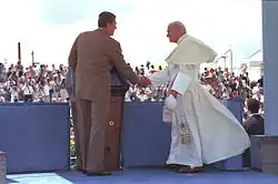 Poland gained some attention during the 2012 presidential election, as Republican challenger Mitt Romney visited the country during his campaign. He was endorsed by Lech Wałęsa, but was rebuked by the pro-trade union Solidarity (Poland) because of Romney's alignment with business interests such as right-to-work law perceived as hostile to unionists and workers' rights.[46][47] Romney made a clear outreach to Polish-Americans during his campaign, although it was criticized as superficial.[48] During the elections of 2020, 54% of the Polish-Americans voted for Joe Biden, and 42.4% voted for Donald Trump.[49]