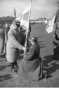 Wladyslaw Sikorski presents the banner for the Polish sapper unit in France.
