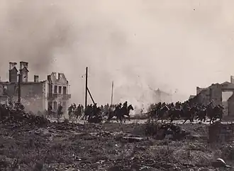 The Polish cavalry in Sochaczew photograph supposedly depicts the eponymous charge of the Polish cavalry in Sochaczew during the Battle of the Bzura in 1939, but is now believed to have been taken during the filming of Hans Bertram's propaganda movie Kampfgeschwader Lützow in 1940. The photograph is still one of the most widely used depictions of Polish cavalry during the 1939 invasion of Poland.[1]