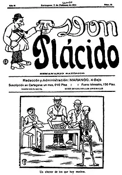 Regarding the cuneros deputies, Romero Salvador points out that when new elections were called, "the internal struggle among the numerous aspirants for the nomination could be, and in most cases was, more competitive and difficult than the election itself. Being encasillado meant having the support of the government’s apparatus and resources, with everything that entailed, and since the opponent, if there was one, lacked these and also did not have sufficient weight in these districts without a cacique, they were usually elected."[178] An example of a cunero deputy could be Joaquín Chapaprieta, born in Torrevieja (Alicante), who was once a deputy for Cieza (Murcia), another time for Loja (Granada), another for Santa María de Órdenes (La Coruña), and twice for Noia (La Coruña).[179] Another case is that of the journalist and writer José Martínez Ruiz Azorín, born in Monóvar (Alicante) and a parliamentary chronicler for the conservative newspaper ABC, who between 1907 and 1919 was elected four times as a deputy for the districts of Sorbas and Purchena in Almería, and a fifth time for Ponteareas (Pontevedra). In the case of the latter district, "he did not even have to go there. He merely wrote an article for a local magazine and sent a telegram of thanks: ‘I express my love for the beautiful Galician land and cordially thank the good coreligionists [of the Conservative Party] with whom I share affection and admiration for the illustrious son of Galicia, accomplished by the Treasury portfolio.’" This "illustrious son of Galicia" was Gabino Bugallal.[180] Romero Salvador notes that throughout the Restoration, the number of districts occupied by the "hermit crabs"—who retained their seat regardless of the party in government—increased, meaning a corresponding decrease in the number of "free" districts, which reduced the government's leeway in placing deputies through encasillado. The proof of this is that, although the government calling the elections always won them, the difference in seats with the other dynastic party decreased throughout the first third of the 20th century.[181] Romero Salvador compiled a list of deputies who held seats in the same district ten times or more during the Restoration. He found a total of 68: 32 conservatives, 32 liberals, three republicans (including Gumersindo de Azcárate for León),[182] and one independent Catholic (for the district of Zumaya). Among the conservatives, notable figures include Antonio Maura (elected 19 consecutive times between 1891 and 1923 for Palma de Mallorca) and Eduardo Dato (17 terms, 12 of them for the district of Murias de Paredes). On the liberal side, the most prominent was the Count of Romanones (17 consecutive terms for Guadalajara). Romero Salvador also highlights the existence of parliamentary dynasties, such as the Cánovas family—three brothers, four nephews, a brother-in-law, and a brother-in-law by marriage of Antonio Cánovas del Castillo—, the Sagasta family—a son, a stepson, a grandson, several uncles, and cousins—, the Silvela family—two brothers, his father-in-law, his brothers-in-law, and a nephew—, or the Maura family—three sons. Some deputies "inherited" the districts of their fathers.[183] Wenceslao Fernández Flórez, a parliamentary chronicler for the monarchist and conservative newspaper ABC, wrote in 1916:[184]