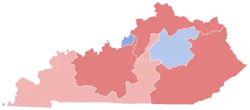 | 2008 | Steve Beshear (D) | Daniel Mongiardo (D) | Jack Conway (D) | Todd Hollenbach (D) | 22R, 15D, 1I[ah] | 63D, 37R[ai] | McCain/ Palin (R) | ||||||