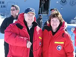 October 10, 2002, saw Collins vote with the majority in favor of the Iraq War Resolution authorizing President George W. Bush to go to war against Iraq.[55] In November 2007, Collins was one of four Republicans to vote for a Democratic proposal of $50 billion that would condition further spending on a timeline for withdrawing troops, mandating that a withdrawal begin 30 days after the bill was enacted as part of goal of removing all US troops in Iraq by December 15, 2008. The bill failed to get the 60 votes needed to overcome a filibuster.[56] In April 2008, Collins and Democrats Ben Nelson and Evan Bayh met with President Bush's advisor on Iraq and Afghanistan Douglas Lute as the three senators expressed support for a prohibition on spending for major reconstruction projects, requiring Iraq to pay for its security forces to be trained and equipped and to reimburse the American military for the estimated $153 million a month the military spent on fueling in combat operations in Iraq. Collins stated after the meeting that while the administration's view was not entirely similar to that of the senators, they at least seemed open to it.[57] In June 2014, while growing violence erupted in Iraq under the leadership of Prime Minister Nouri al-Maliki, Collins stated that the violence would have been slower had a residual NATO force been present in Iraq and that the question was whether air strikes were effective.[58]
