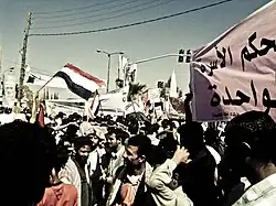 The 2011 Yemeni protests followed the initial stages of the Arab Spring and began simultaneously with the Egyptian Revolution. The protests were initially against unemployment, economic conditions, and corruption, as well as against the government's proposals to modify the constitution of Yemen. The protestors' demands then escalated to calls for President Ali Abdullah Saleh to resign.