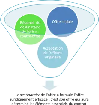 Similarly, the author of the offer is not necessarily the same individual who drafted the contract. It is sufficient for the initial recipient to modify, even a minor one, to the proposal that determines their consent, for them to become the author of a new offer, which must be accepted by the drafter of the initial project.[19]