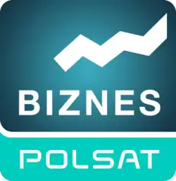 Modeled on the logotype Polsat television The bulk of the gray color and cyan color or glaucous, with the word "BIZNES" and smaller - cyan. |