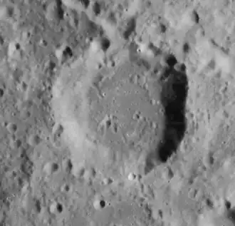 Polybius is a lunar impact crater in the southeast part of the Moon, and is named after ancient Greek historian Polybius.[1] It is located to the south-southeast of the larger crater Catharina, in the area framed by the Rupes Altai scarp. Some distance to the northeast is the Mare Nectaris, with the flooded craters Beaumont and Fracastorius.